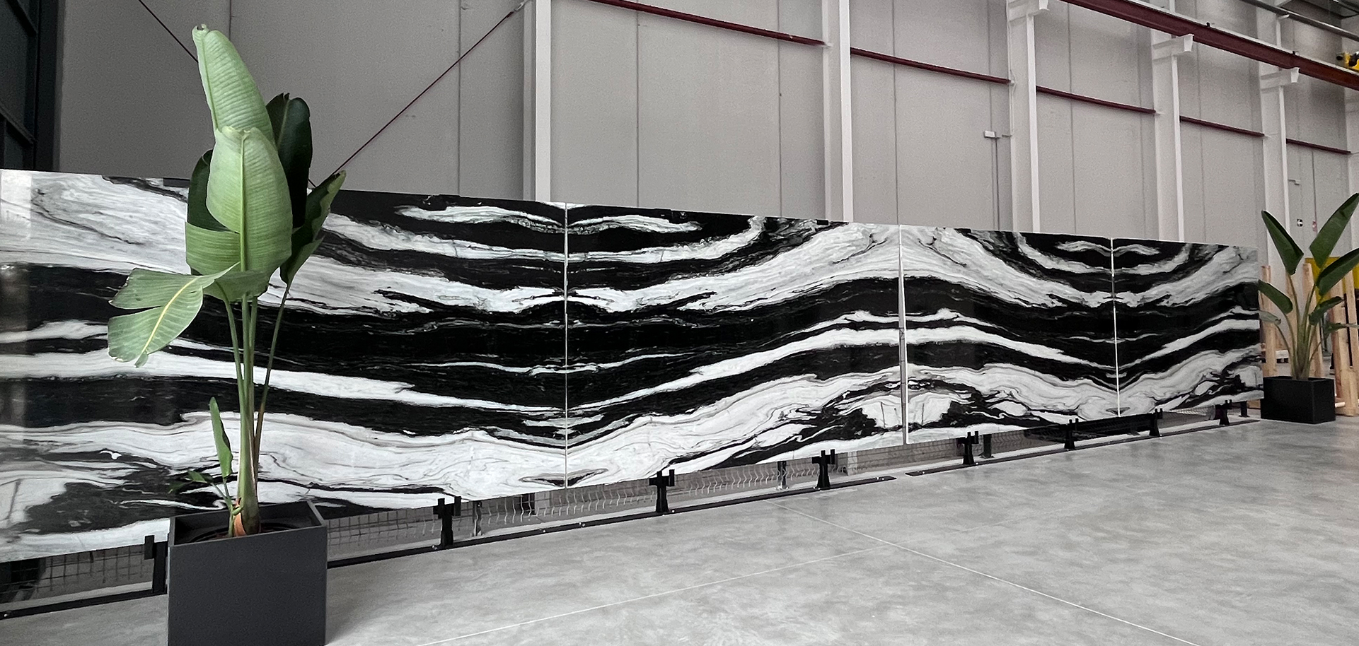 Las majestuosas obras que revisten sus espacios con piedra natural, suelen incorporar diferentes tipos de mármol en ellas, (Crema Marfil, Rain Forest Green, Rain Forest Brown, Portoro, Verde India, Blanco Carrara, Marrón Emperador, Rojo Alicante, Negro Marquina, Bronze Amani, Panda White…) así como diferentes combinaciones de colores de mármol (desde el color de blanco, hasta el color de negro, pasando por el amarillo, rosa, gris, marrón, verde…).